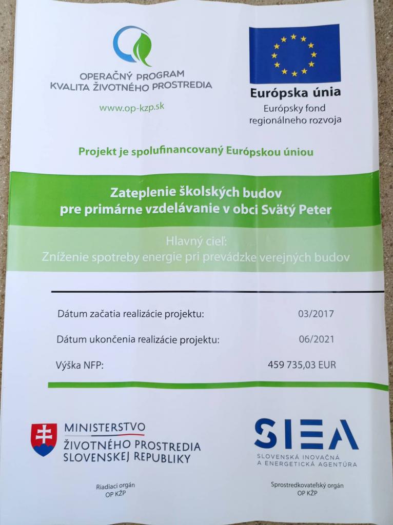 Zateplenie školských budov pre primárne vzdelávanie v obci Svätý Peter